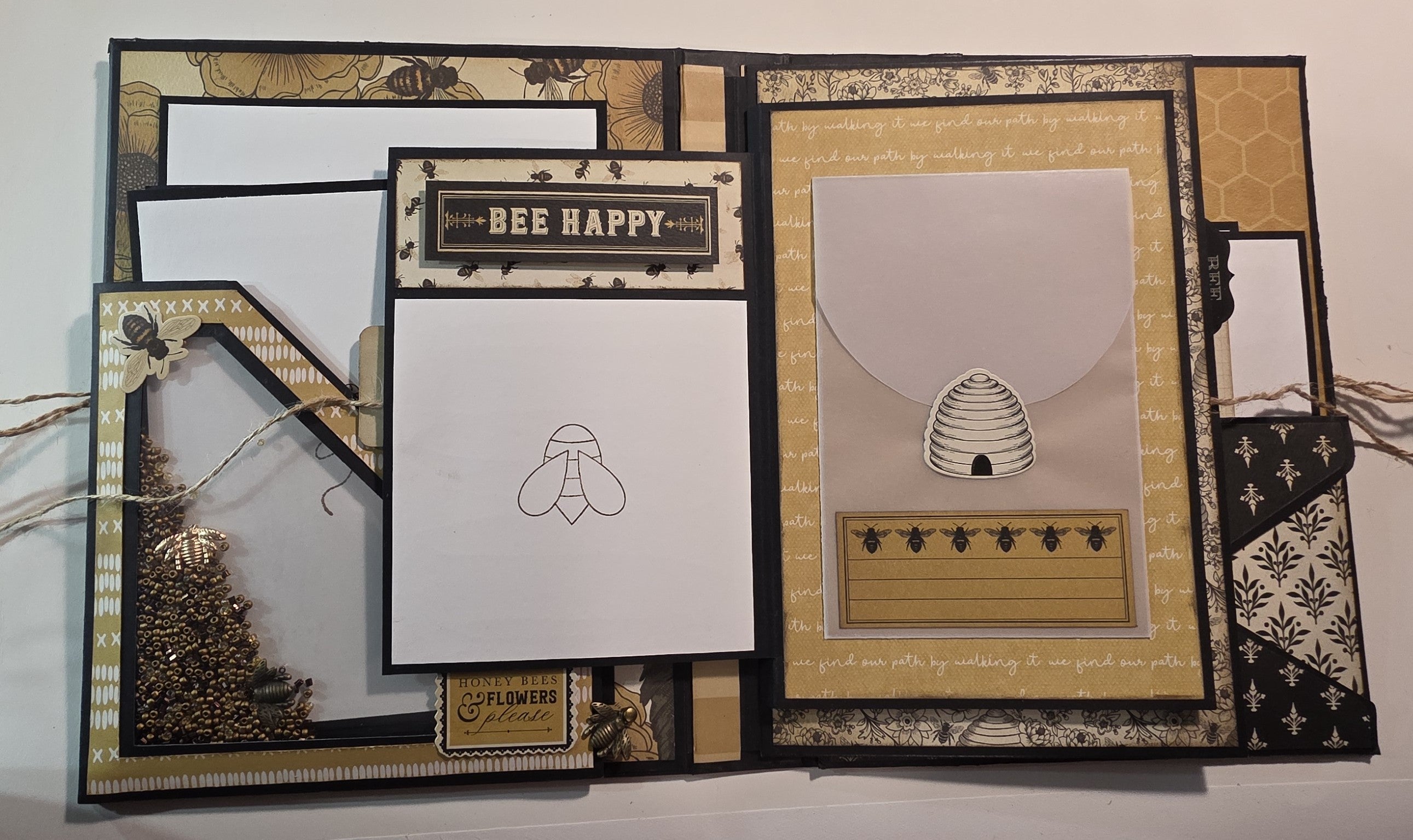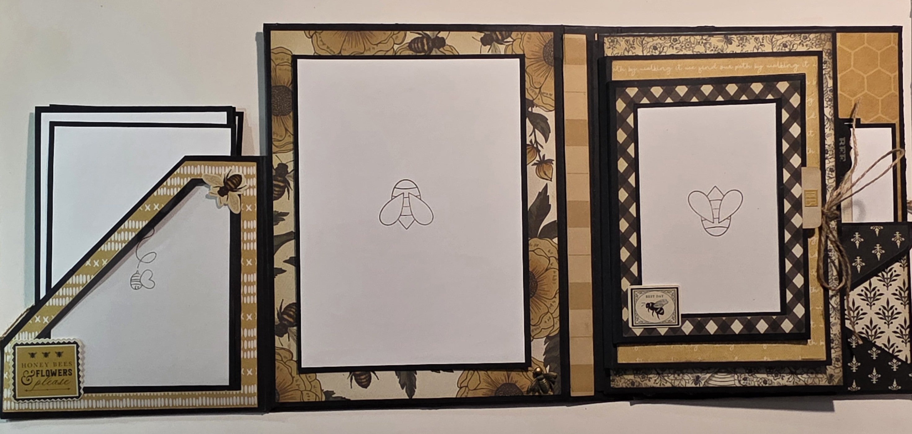 I spent a ton of time making the "Insert Idea #1" as my Christmas Card this year so I decided to go in a different direction for the Veleeta Album.Ā Yes, I may be obsessed with bees but I couldn't resist this beautiful, thick cut paper from Carta Bella.Ā I took a few creative licenses throughout but I'm pretty happy with it overall.Ā Ā