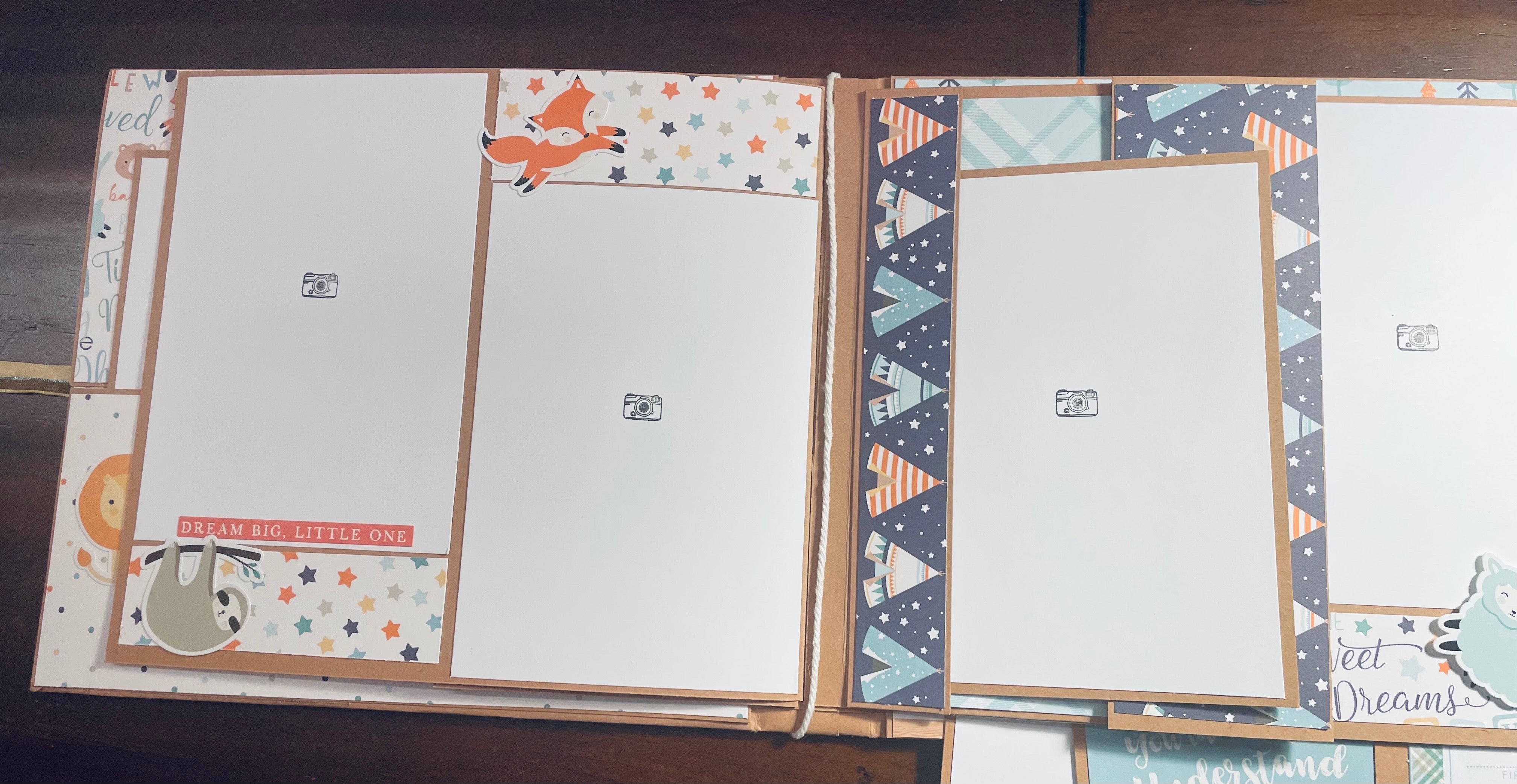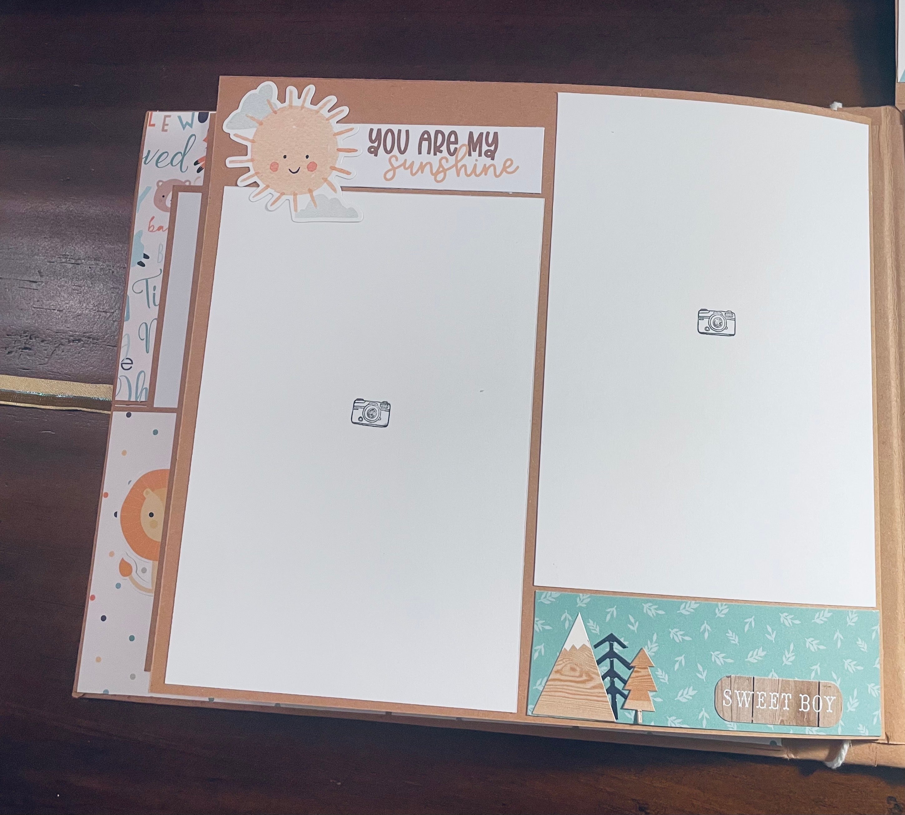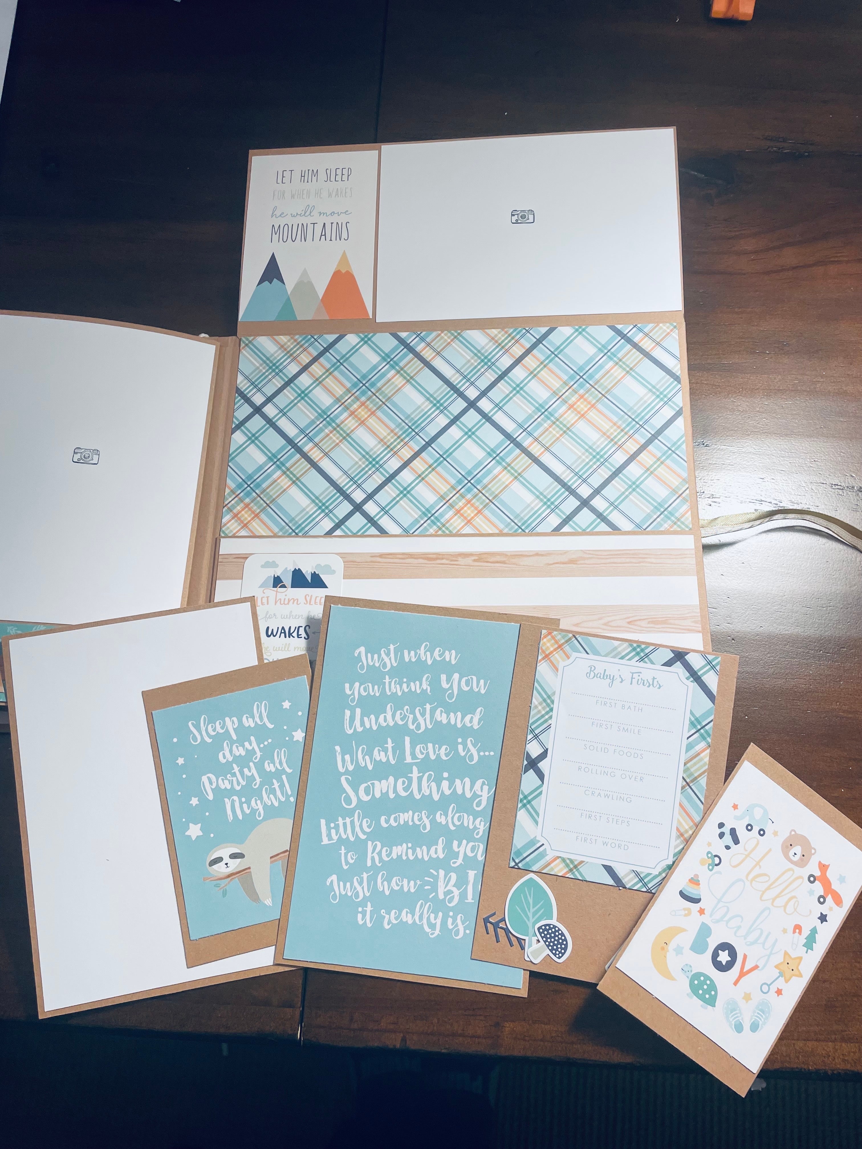 I feel like I have been MIA for a while, but I am so busy watching my grandson I rarely find time to craft. He is a joy, and I know that he will be off to preschool before I know it so I am just enjoying it all! They had a new house built and just moved in so I made this album for pictures of the process from dirt lot to final home. I used the Minni-sota album for inspiration. I had so many pictures to include I had to substitute an extra waterfall. Thank goodness Frances makes it easy to customize her albums! 😊