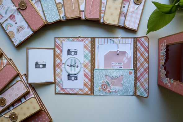 This box was designed by student request, and I had so much fun bringing her idea to life! She loved the idea of 12 flipbooks having a home. It's perfect for new moms or to document a school year, month by month!
